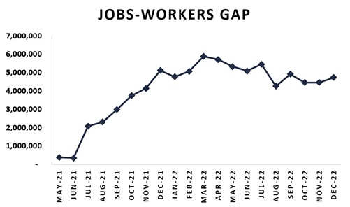 The most recent labor market report indicates that the Fed is making significant progress on this front. A key metric to watch will be the jobs-workers gap (the ratio of available jobs to the number of unemployed workers able to fill them). The jobs-workers gap shrank substantially in the back half of 2022, but still exceeds the pre-pandemic gap by about 3 million. The path to a soft landing relies on the fact that, thus far, the decline is being driven by a largely harmless decline in job openings, without any increase in the unemployment rate. Job losses cause real economic damage, but the elimination of a potential job (that ultimately never was) causes little to no damage. If the Fed can gradually continue to make progress in reducing the number of open jobs and avoid a wage-price spiral, a soft landing is possible – though even then, the landing is likely to be a little bumpy.