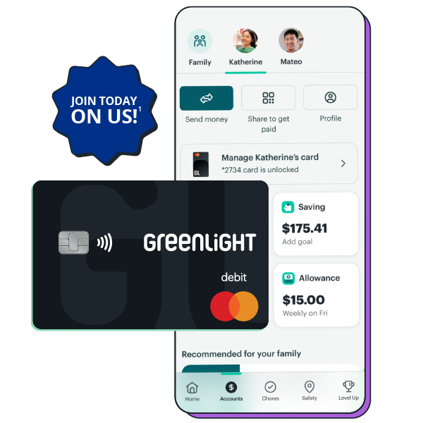 Greenlight is a savings solution built with families in mind. With Greenlight’s debit card and app, parents can pay allowance, assign chores, and help their kids learn to earn, save, spend wisely, and invest. As a Greenlight account holder, you can: